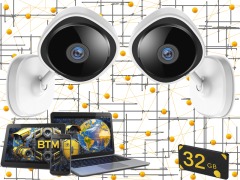 Комплект на 2 видеокамеры "BTM-CuPoL-2-VZ-IP-32Gb" с учетом установки (микрофон, ночное видение, запись по движению на внутренние карты памяти, просмотр с телефона)