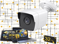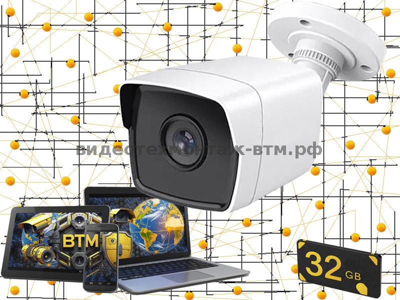 Комплект на 1 видеокамеру "BTM-CiliNDR-1-VZ-IP-32Gb" с учетом установки (микрофон, ночное видение, запись по движению на внутреннюю карту памяти, просмотр с телефона)