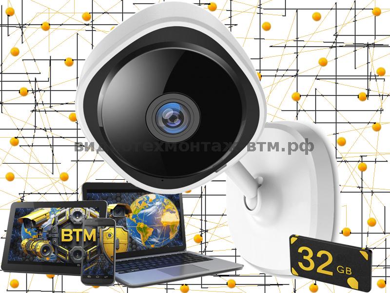 Комплект на 1 видеокамеру "BTM-CuBe-1-VZ-IP-32Gb" с учетом установки (микрофон, ночное видение, запись по движению на внутреннюю карту памяти, просмотр с телефона)