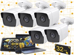 Комплект на 5 видеокамер "BTM-CuPoL-5-VZ-IP-32Gb" с учетом установки (микрофон, ночное видение, запись по движению на внутренние карты памяти, просмотр с телефона)