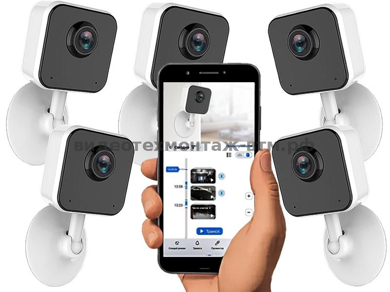 Комплект на 5 видеокамер "CuBe-VZ-V" с учетом установки (микрофон, ночное видение, запись по движению на внутренние карты памяти, просмотр с телефона)