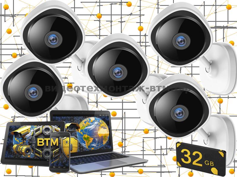 Комплект на 5 видеокамер "BTM-CuBe-5-VZ-IP-32Gb" с учетом установки (микрофон, ночное видение, запись по движению на внутренние карты памяти, просмотр с телефона)