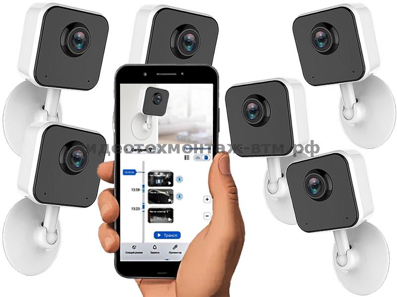 Комплект на 6 видеокамер "CuBe-VZ-VI" с учетом установки (микрофон, ночное видение, запись по движению на внутренние карты памяти, просмотр с телефона)