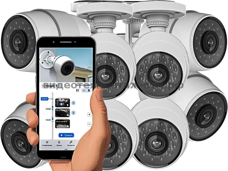 Комплект на 8 видеокамер с микрофоном, запись со звуком по детектору движения на внутреннюю карту памяти, удаленное управление с телефона, просмотр происходящего в реальном времени, а также видеархива записей. В стоимость включено: восемь видеокамер, восемь карт памяти 32Gb, выезд мастера, доставка, настройка, монтаж и подключение.