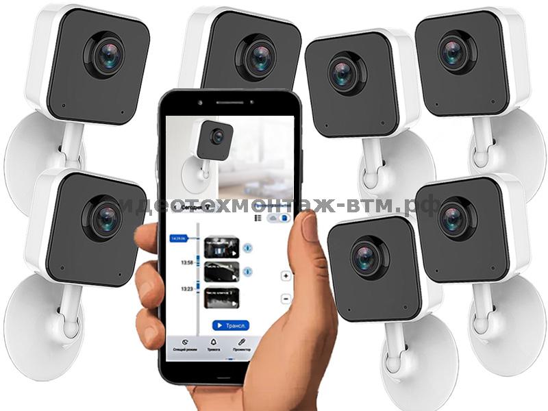 Комплект на 7 видеокамер "CuBe-VZ-VII" с учетом установки (микрофон, ночное видение, запись по движению на внутренние карты памяти, просмотр с телефона)