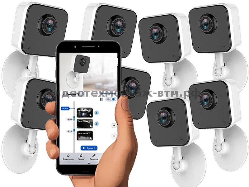 Комплект на 8 видеокамер "CuBe-VZ-VIII" с учетом установки (микрофон, ночное видение, запись по движению на внутренние карты памяти, просмотр с телефона)