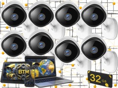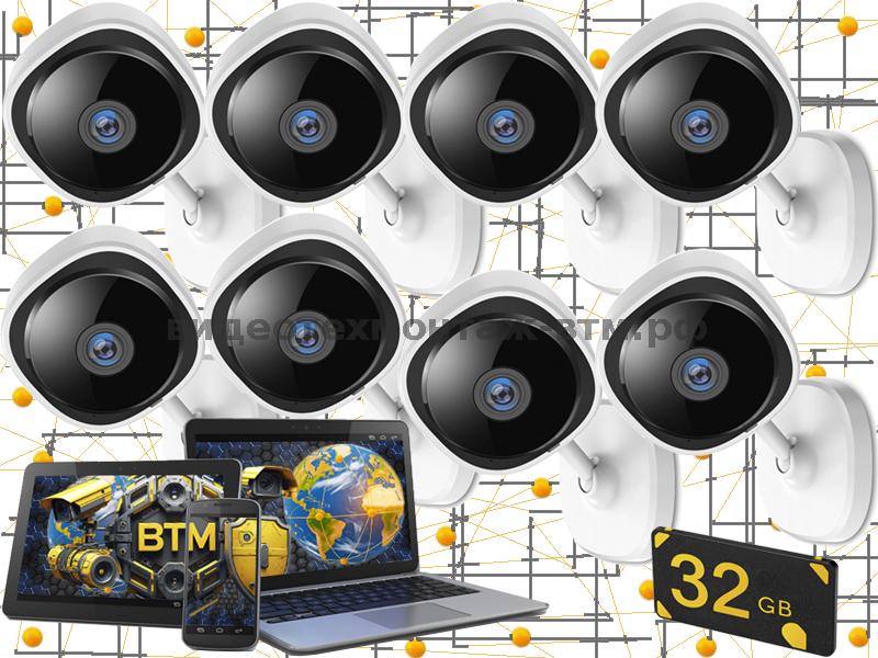 Комплект на 8 видеокамер "BTM-CuBe-8-VZ-IP-32Gb" с учетом установки (микрофон, ночное видение, запись по движению на внутренние карты памяти, просмотр с телефона)