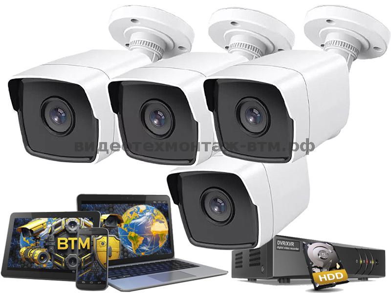 Состав: выезд мастера, доставка, монтаж, настройка комплекта на четыре видеокамеры и видеорегистратор с записью 25 кадров/сек. по движению на внутренний диск 128Гб (возможна замена), кабель с прокладкой до 10м, блоки питания, разъемы, расходники - для квартиры, подъезда, дачи, офиса, магазина